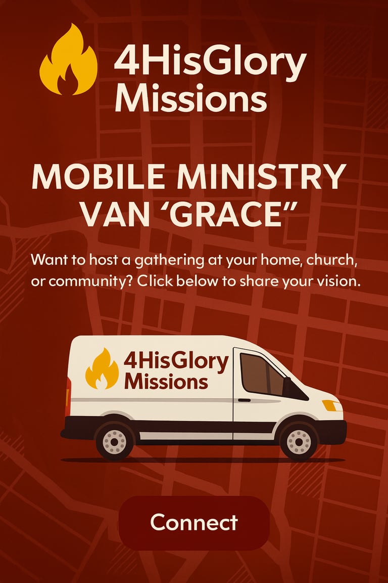 Follow Christine as she travels across Canada in her ministry van “Grace” — sharing testimonies, divine appointments, and powerful moments of prayer and healing. Video updates and on-the-road reels are coming soon! Stay tuned to see what God is doing through 4HisGlory Missions.